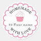 Un autocollant mignon avec du texte - fait maison avec amour - et le nom personnalisé est parfait à utiliser sur votre boulangerie.