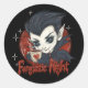 Sticker Rond Fantastique nuit. Vampire mignon avec une tasse de