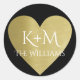 Sticker Rond faux coeur d'amour or avec deux initiales et nom