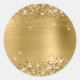 Créez vos propres autocollants ronds classiques en or glam girly. Parties scintillant d'or brillant et faux sur le haut et le bas avec éclat extra sur un faux film de métal brossé jaune doré à l'ombre. Customisez avec votre propre texte ou même ajoutez une image de logo (PNG transparent) pour petite entreprise. Les couleurs principales sont le jaune doré, l'or, le beige et le blanc. Tout le glam girly est créé avec des graphiques arts numériques et est un effet imprimé.