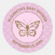 Sticker Rond Faux Gold Foil Look Papillon - Baby shower pourpre