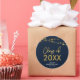 Cet élégant autocollant rond Graduation Party que vous pouvez ajouter votre année de graduation comporte des cordes de lumières et les mots "Classe de" en faux feuille d'or contre un arrière - plan bleu foncé. Consultez l'invitation correspondante et les timbres-poste ici https://www.zazzle.com/collections/119637323833384053?rf=238364477188679314 Personnalisez-le avec vos détails en remplaçant le texte de l'espace réservé. Pour plus d'options, cliquez sur le bouton "Personnaliser". *Veuillez noter que le filigrane Zazzle qui apparaît dans l'aperçu du zoom n'apparaîtra PAS sur le produit imprimé final. © Bois de rose et agrumes