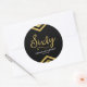 Cet autocollant rond chic présente un chevron géométrique moderne et le mot "Sixty" en faux or contre un arrière - plan noir. C'est génial pour une célébration du 60e anniversaire. Consultez les invitations et les éléments correspondants ici http://www.zazzle.com/collections/modern_faux_gold_chevron_celebration_collection-119531050277382712?rf=238364477188679314 Personnalisez-le avec vos détails en remplaçant le texte de l'espace réservé. Pour plus d'options, cliquez sur le bouton "Customiser". *Veuillez noter que le filigrane Zazzle qui apparaît dans l'aperçu du zoom n'apparaîtra PAS sur le produit imprimé final. © Bois de rose et agrumes