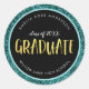 Élégant autocollant rond de graduation avec une bordure de parties scintillant fausse turquoise et le mot "Graduate" en fausse feuille d'or tendance. Personnalisez-le avec vos détails en remplaçant le texte de l'espace réservé. Pour plus d'options comme changer la police, la taille du texte/la couleur, l'espacement entre les lettres ou pour contracter ou développer le texte courbe cliquez sur le bouton "Personnaliser". *Veuillez noter que le filigrane Zazzle qui apparaît dans l'aperçu du zoom n'apparaîtra PAS sur le produit imprimé final © Rosewood et Citrus