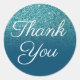 Photo de turquoise associée à un ombre bleu océan. Le message texte "Merci" dans un joli style de calligraphie est personnalisable. Turquoise bleu merci autocollants stickers. Design art numérique photo chic pour un quinceañera, mariage ou autre événement spécial. Faux parties scintillant design imprime comme une photo.