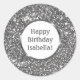 Sticker Rond Faux Silver Grey Parties scintillant Custom Joyeux