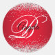 Elégante parties scintillant argentée avec éclat contre une image graphique brillante rouge et sombre. On peut customiser le monogramme de calligraphie noir et blanc au centre. Tous les éléments brillants et brillants argentés de ce design moderne sont des graphismes numériques. Monogrammes précieux autocollants pour les vacances.