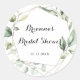 Cet autocollant de favor de mariage élégant géométrique or vert est parfait pour une douche de mariage moderne. Le design présente des feuilles de eucalyptus vert botanique peintes à la main, ornant un cadre géométrique or.