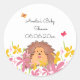 Personnalisé Harriet le hérisson privilégie l'autocollant rond. Cette mignonne créature de bois est un choix idéal pour un baby shower de filles ou une fête d'anniversaire.