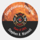 Sticker Rond Félicitations Classe de Pompiers Flammes | Nom