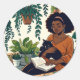 Sticker Rond Femme se détendant avec son chat, son livre et ses
