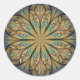 Copyright © 2010, Susan Wallace. Motif en vitrail floral complexe dans les tons beurres jaune, violet, bleu et turquoise. Cartes vierges, timbres-poste, autocollants en forme de carré, d'étoile et de coeur.