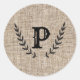 Sticker Rond Ferme rustique Burlap & Black Botanical Laurel