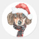 Sticker Rond Festif aquarelle Dachshund Père Noël Noël