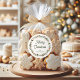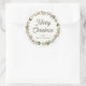 Festive Foliage Wreath, autocollant de vacances. Couleur beige douce arrière - plan et coordonnant le texte de couleur verte.