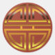 Ce design élégant et moderne affiche un motif rond à motif de longévité qui est le plus souvent associé aux fêtes d'anniversaire. Les couleurs sont de l'or non métallique sur un arrière - plan rouge. La couleur arrière du sol peut être modifiée par une sélection de couleurs différente dans la palette de couleurs. Au cours des siècles, le motif de longévité a été largement utilisé dans les vêtements, meubles, architecture et art populaire en Chine comme moyen d'apporter des bénédictions à la maison. Cet autocollant traditionnel est grand comme fête d'anniversaire favorise ou envelopper les chasseurs sur les invitations.