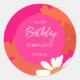 Sticker Rond Fête d'anniversaire à la marguerite rose et orange