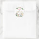 Fête d'anniversaire à thème safari pour les filles mignonnes Sticker rond classique Filles mignonnes safari à thème fête d'anniversaire préférée autocollant comprenant quatre animaux mignons de la jungle, diverses fleurs colorées et audacieux feuillage de jungle verte. La fausse calligraphie dorée sauvage d'un titre est amovible.
