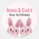 Sticker Rond Fête d'anniversaire avec lapins roses