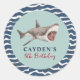 Autocollants de fête d'anniversaire de requin avec grand requin blanc et arrière - plan bleu.