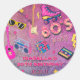 Sticker Rond Fête d'anniversaire des années 80 Retro rose viole