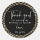 Sticker Rond Fête d'anniversaire en Noir, Blanc & Or "Merci"!