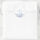 Autocollant rond pour fête de mariage champêtre floral bleu. Facile à personnaliser. Jolies fleurs aquarelles pour le printemps et l'été.
