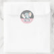 Autocollant rond classique Fête de naissance éléphant fille Rose et Gris