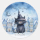 Sticker Rond Fête de Noël de Chat Noir mignonne
