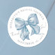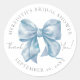 Un autocollant de douche nuptiale à arc bleu mignon et ceinturé avec un adorable arc bleu-en-ciel. En haut, il y a le nom et la "Fête des mariées" de la future mariée et en bas, la date. Au centre, à côté de l'arc bleu, se trouve "Merci !" en écriture gracieuse. Ce design simple et minimal de douche nuptiale classique utilise du texte gris dans un mélange de serif et de typographie de script, créant un look sophistiqué mais charmant inspiré de coquette. Vous pouvez customiser les couleurs de police et l'arrière - plan pour convenir à votre style. Fête des mariées à thème Merci Elegant Aquarelle Bleu Bow Étiquette à motif .