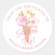 Cette jolie douche nuptiale sur le thème de la crème glacée merci autocollant est décorée de fleurs d'aquarelle et d'un cône de crème glacée. Il dit "Scooped Up !" en typographie rose pastel. Facile à personnaliser. Aquarelle originale © Michele Davies.