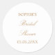 Facile à personnaliser avec le nom de la future mariée et la date de la douche nuptiale, ce joli autocollant présente du texte de style traditionnel dans une teinte dorée de beige (faux look or / or) sur un arrière - plan blanc.