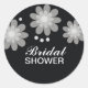 Les fleurs gris argent sur un autocollant noir avec les mots Fête des mariées sur elle sont parfaites comme des sceaux pour vos invitations et votre douche nuptiale favors.Ils ajoutent une touche élégante et personnelle à vos célébrations de douche nuptiale. Plus de couleurs sont disponibles dans ce design.