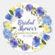 Des hydrangées bleues et d'autres fleurs d'été créent un cadre floral magnifique sur cet autocollant de douche nuptiale. La Fête des mariées est écrite dans une police de caractères bleu moderne. Le nom et la date de la mariée suivent dans une police classique simple. Tout le texte peut être facilement édité. Vous pouvez également modifier la police et la couleur.