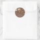 Mignons inséparables autocollant rond Fête des mariées avec des oiseaux mariés et mariés assis sur une branche avec des fleurs de tango orange sur un arrière - plan chocolat brun. Idéal pour les étiquettes de douches nuptiales et les scellés d'enveloppe ! Customisez avec vos informations de douche nuptiale et vous êtes tous prêts à partir ! Invitations et timbres-poste correspondants disponibles dans notre boutique www.celebrateitinvites.com.