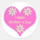 Sticker Rond Fête des mères Coeur rose et Fleurs jaunes