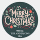 Célébrez les vacances en style avec cet autocollant rond moderne avec un arrière - plan turquoise foncé et joyeux typographie blanche et rouge. Le message "Joyeux Noël" est orné de saints, de flocons de neige et de billes, créant un design ludique mais élégant. Personnalisable avec votre nom de famille et votre année, cet autocollant est parfait pour ajouter une touche personnelle à vos cartes de fin de année, cadeaux et faveurs de fête. Le mélange d'éléments festifs et de teinte turquoise foncée et tendance apporte une touche contemporaine à vos salutations saisonnières. Merci de visite.
