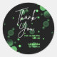Un autocollant de remerciement moderne, élégant et glamour. Ce design est caractérisé par un Merci dynamique de typographie avec bokeh en dégradé vert sur un arrière - plan noir. Personnalisez-le avec votre texte.