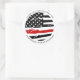 Ajoutez la touche finale à vos invitations à la retraite des pompiers ou à la remise des diplômes, et merci aux pompiers d'utiliser ces stickers minces rouge pour les pompiers et les fournitures de fête. Etats-Unis Drapeau américain en couleurs du drapeau de pompier, design en détresse. Cette collection de diplômes de pompiers sera un favori. Consultez notre collection de lignes rouges minces pour les invitations à la retraite des pompiers, les invitations à l'obtention d'un diplôme des pompiers, les cadeaux des pompiers, les faveurs de la fête et les fournitures. DROIT D'AUTEUR © 2020 Judy Burrows, Black Dog Art - Tous droits réservés. Sticker rond classique du Merci de la fête du pompier mince Red Line