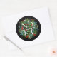 Les autocollants ronds personnalisés présentent le mot NOEL parmi des feuilles élégantes et des baies rouges, blanches et dorées avec votre nom et votre message dans une écriture blanche chic. ARTICLES CORRESPONDANTS dans notre magasin.