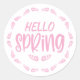 Cet autocollant festif comporte une image de texte "Bonjour Printemps" en rose. La couleur du texte peut être facilement modifiée en cliquant sur "Modifier ce design".