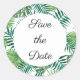 Aquarelle Feuilles Tropical Palm Enregistrer la date Classic Round Sticker