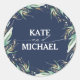 Feuilles vertes et or couronne bleu marine autocollants de mariage bleu