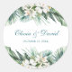 Sticker Rond Feuilles tropicaux et Mariage de fleurs blanches