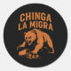 Sticker Rond Fierce Bear Protest – Chinga La Migra Bold Graphic