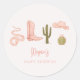Baby shower à thème rustique cowgirl préférez autocollant avec illustration de bottes de cowboy, casquette, serpent, et cactus.
