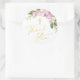 Sticker Rond Fille Baptême Blush Fleurs Roses Brut Merci