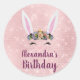 Sticker Rond Fille Blush rose lapin de Pâques fête d'anniversai