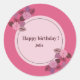 Personnalisé joyeux autocollant rose d'anniversaire avec fleurs. Autocollant floral simple rond avec message, nom pour l'anniversaire. Personnalisez l'autocollant pour l'anniversaire de la femme. Étiquette d'anniversaire rose classique pour jeune ou vieille femme, mères, femmes, amis, grand-mères. Ajouter à l'emballage, livre, carnet, cadeau pour noël, vacances