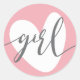 Sticker Rond "Fille" Gris Blanc Bébé Noir Coeur rose